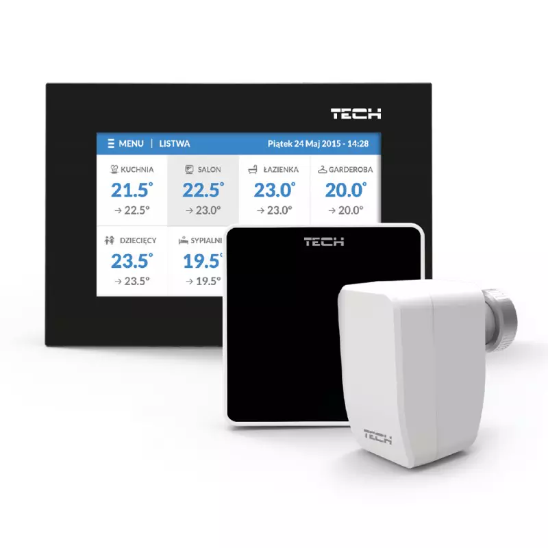 Bezdrátový pokojový regulátor TECH ST-8S pro řízení elektrických pohonů STT-868 (max. 6 ks pro zónu).