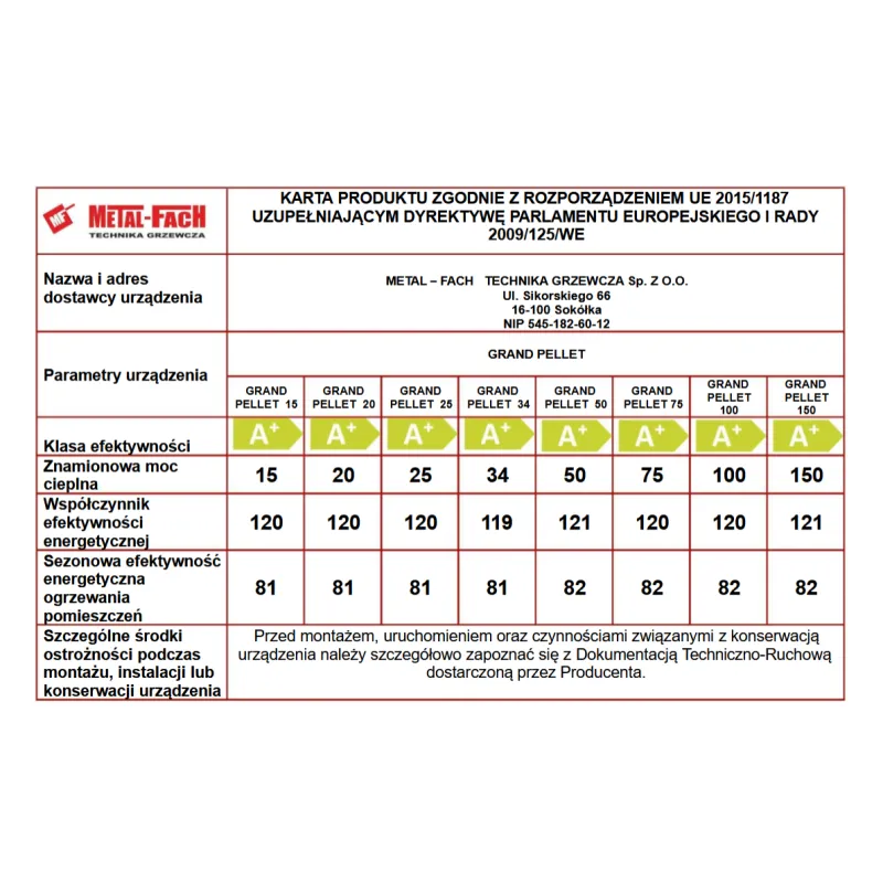 | TYP | GRAND PELLET 15 | GRAND PELLET 20 | GRAND PELLET 25 | GRAND PELLET 34 |