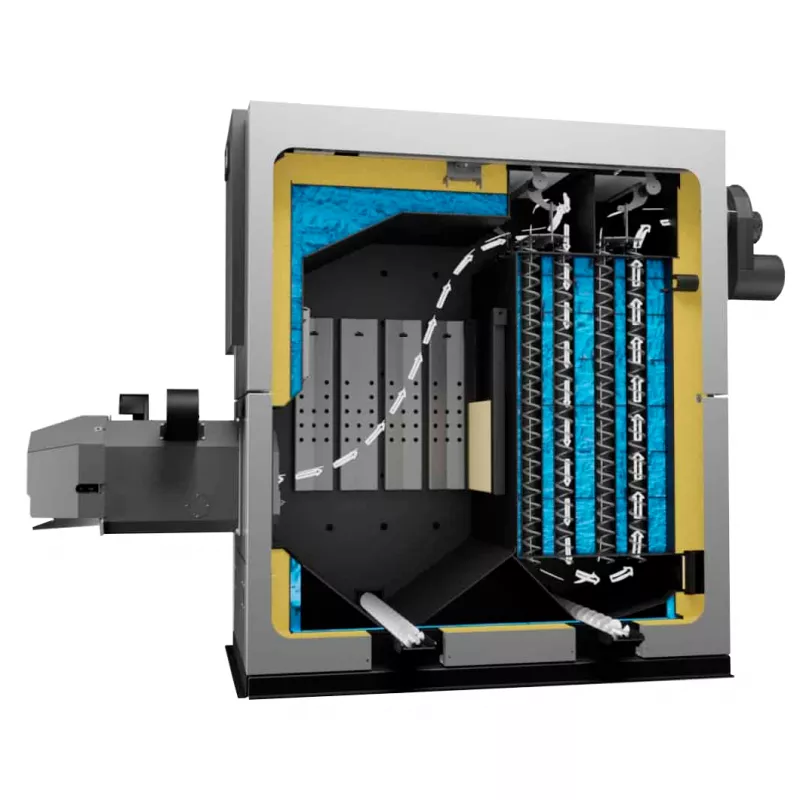 GRAND PELLLET byl navržen pro účinné spalování různých typů biomasy. Samočistící se hořák společně s automatickým systémem samočištění výměníku kotle výrazně snižují frekvenci čištění kotle.