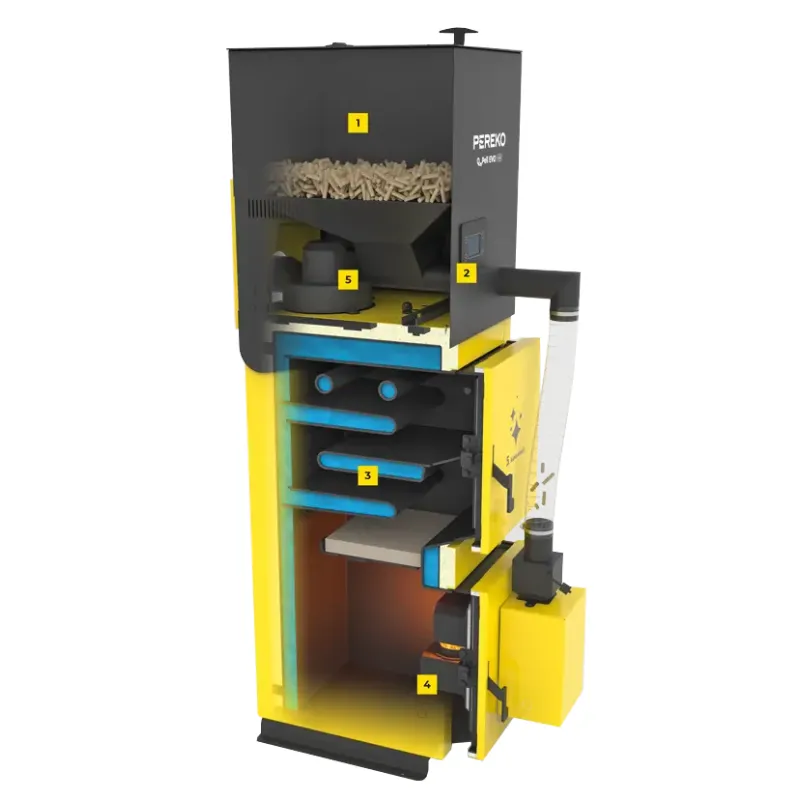 Série QmPell Evo je inovativním počinem konstruktérů v oblasti výkonu, automatizace obsluhy a péče o životní prostředí. Díky kompaktní konstrukci kotle je možné ho přizpůsobit každé kotelně. Nová konstrukce výměníku výrazně snižuje tepelné ztráty a omezuje potřebu jeho čištění.