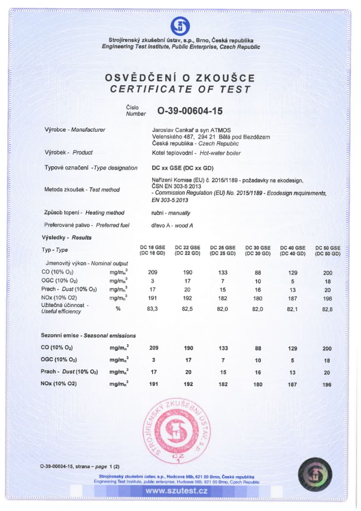 | Min. tah komína [ Pa ] | 20 |