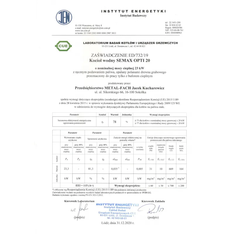 Der SEMAX OPTI Kessel wurde für Personen entwickelt, die über ausreichende Brennstoffvorräte verfügen - mit einer Feuchtigkeit von nicht mehr als 15-20%. Durch eine entsprechend gestaltete innovative Konstruktion ermöglicht der Ofen eine bessere Nutzung des Brennstoffs und reduziert dadurch signifikant die Emission schädlicher Abgase in die Atmosphäre.