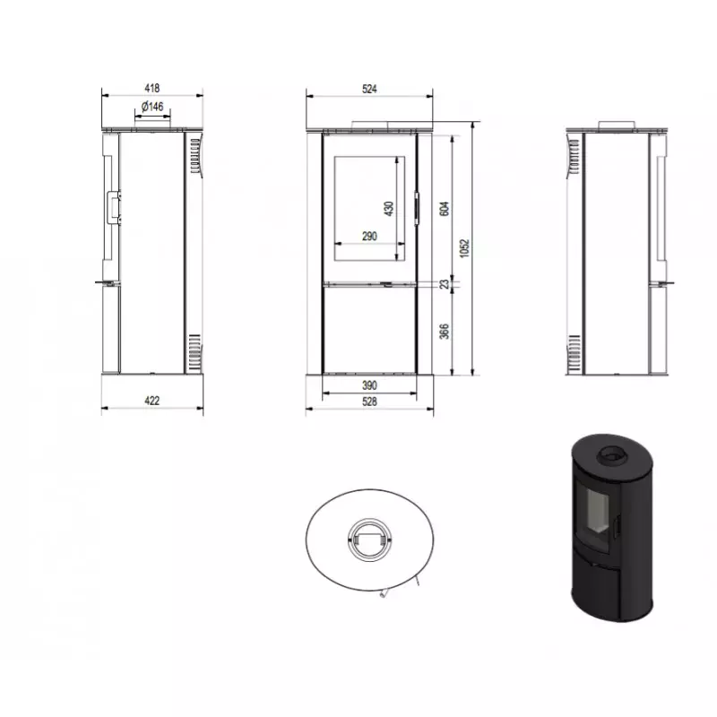 | Durchmesser des Abgasfuchses [ mm ] | 150 |