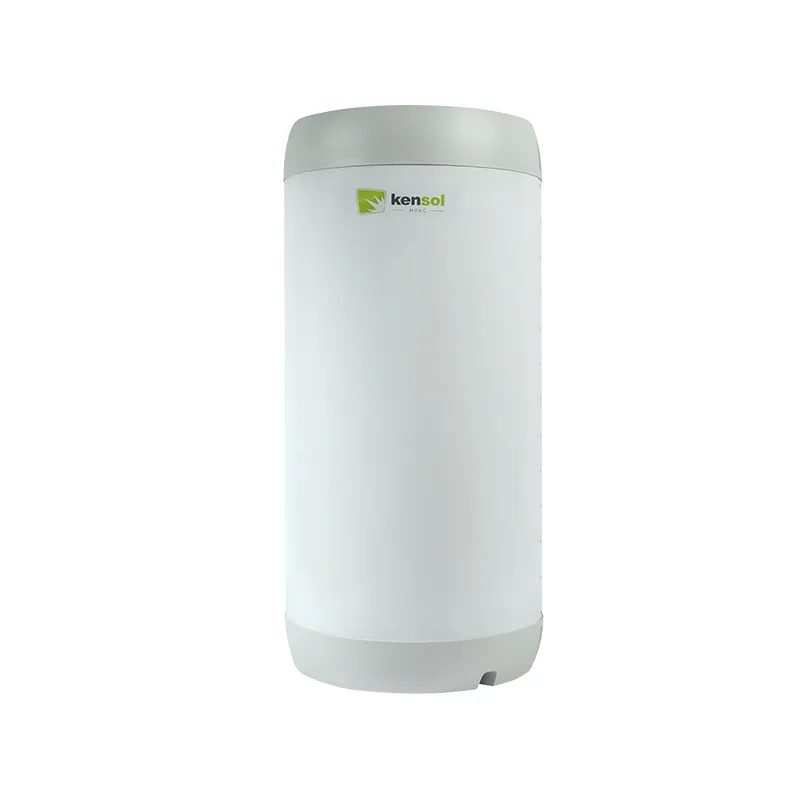 KENSOL-Edelstahl-Wasserwärmetauscher. 200 für Wärmepumpen/Spir. 2,6m2/Heizung 3kW ist ein stehender Wärmetauscher, isoliert (Polyurethanschaum), in einem Metallgehäuse. Der Warmwassertauscher ist für den Einsatz mit Wärmepumpen konzipiert. Er ist mit einem Sicherheitsventil ausgestattet. Es ist möglich, eine hohe Wassertemperatur mit geringen Tagesverlusten zu halten. Der Warmwassertauscher kann im Haushalt für ein warmes Bad oder eine Dusche verwendet werden. Dies ist aufgrund des hohen Wirkungsgrads des Registers mit seiner großen Oberfläche möglich.