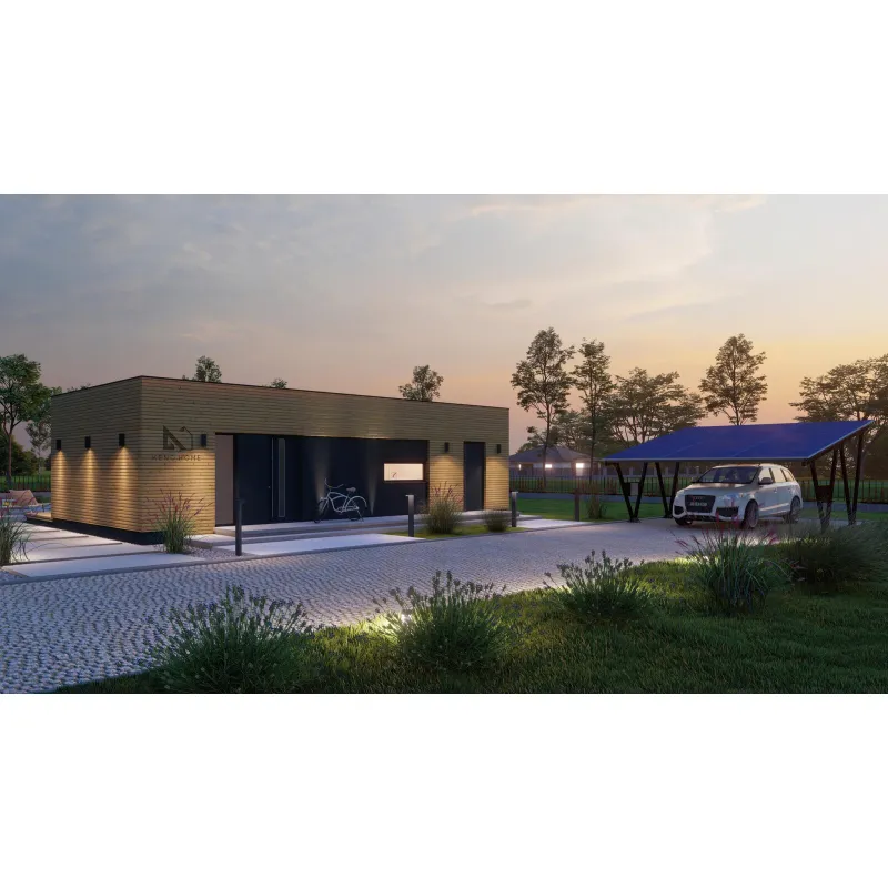 Erdgeschossiges modulares Haus Herdla des polnischen Herstellers PROSAT Home mit einer Nutzfläche von 55,3 m² ist die ideale Wahl für Menschen, die umweltfreundliche Lösungen und hohen Wohnkomfort schätzen.