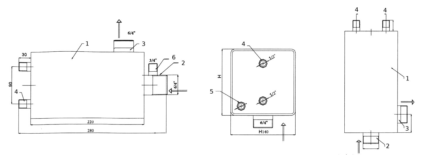 | Durchmesser des Vorlauf und Rücklaufstutzen [ Zoll ] | 6⁄4'' |
