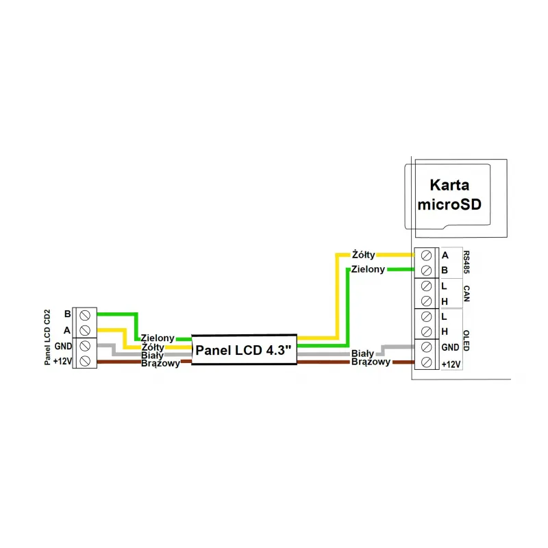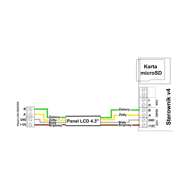 Mit einer Version-3.5-Steuerung kann nur ein 4,3-Zoll-LCD-Panel vom Typ CD1/CD2/CD3 und ein oder mehrere OLED GLASS/Standard-Panels gleichzeitig zusammenarbeiten. Nur ein Panel kann von der Steuerung mit Strom versorgt werden; jedes weitere erfordert eine externe Stromversorgung von 12V DC/0,5A. Wenn dieses Panel als zweiter Bildschirm in der Steuerung verwendet wird, ist eine externe Stromversorgung erforderlich. Version-4-Steuerungen unterstützen keine OLED GLASS/Standard-Panels.