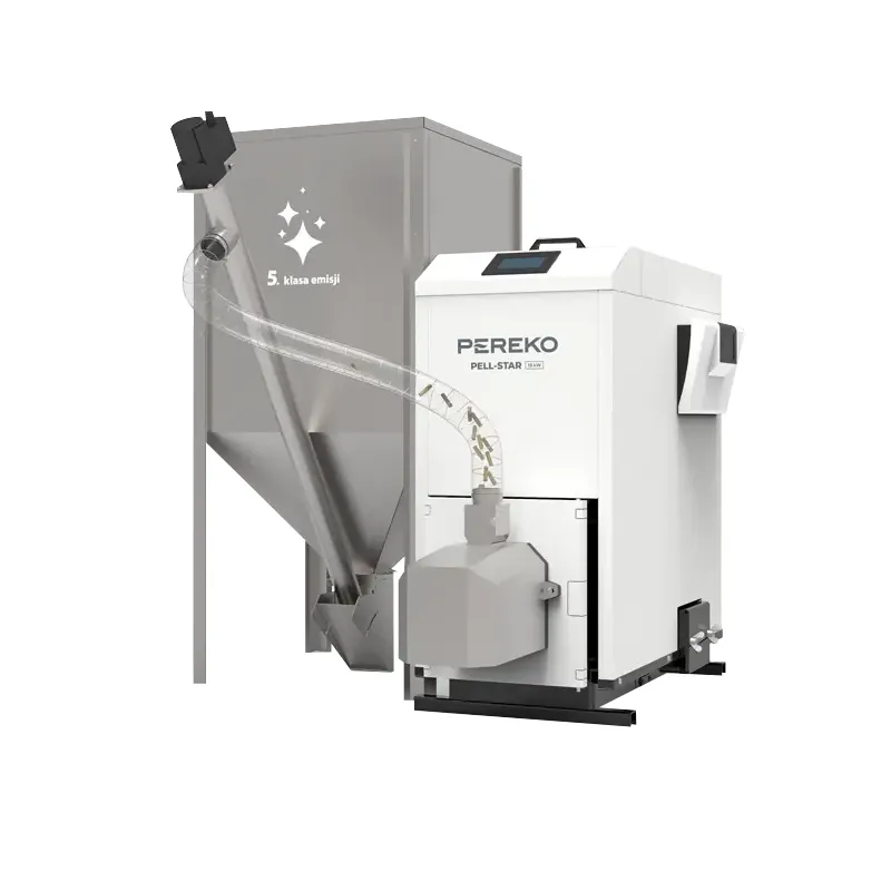 Dank seiner durchdachten Konstruktion kann der Beschickungsbehälter frei in Bezug auf den Kessel positioniert werden. Dies ist die ideale Lösung für Installationen in schwer zugänglichen Bereichen und bietet maximale Flexibilität bei der Montage.