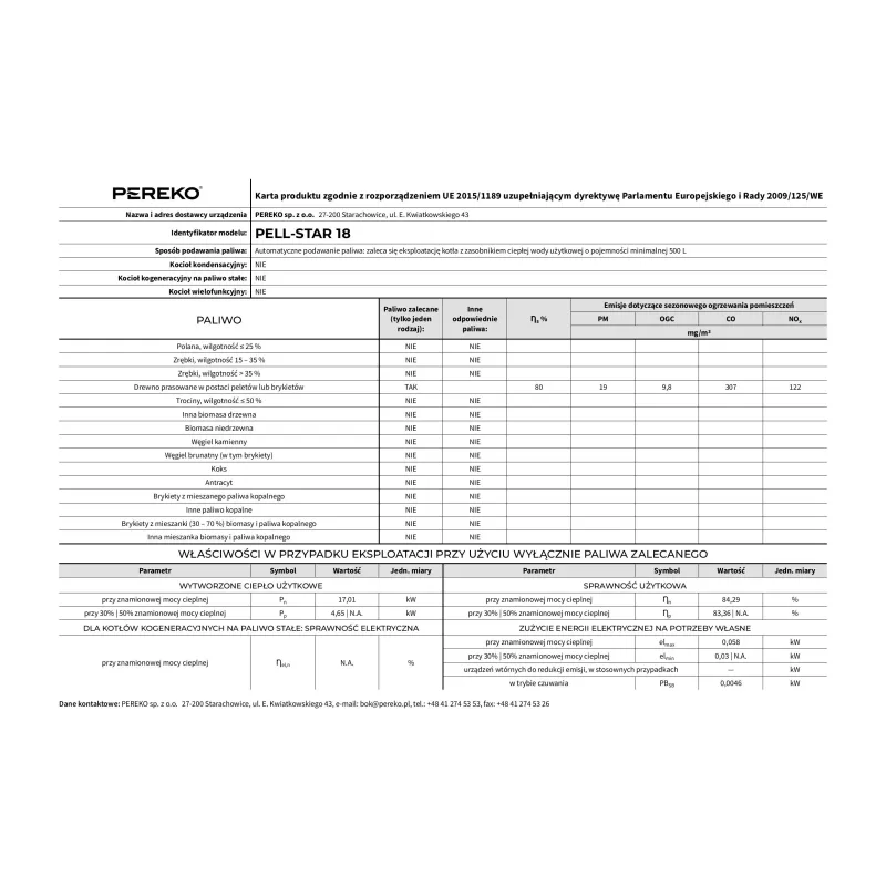 | Hauptbrennstoff | — | Holzpellets (siehe Punkt 2.5) | |