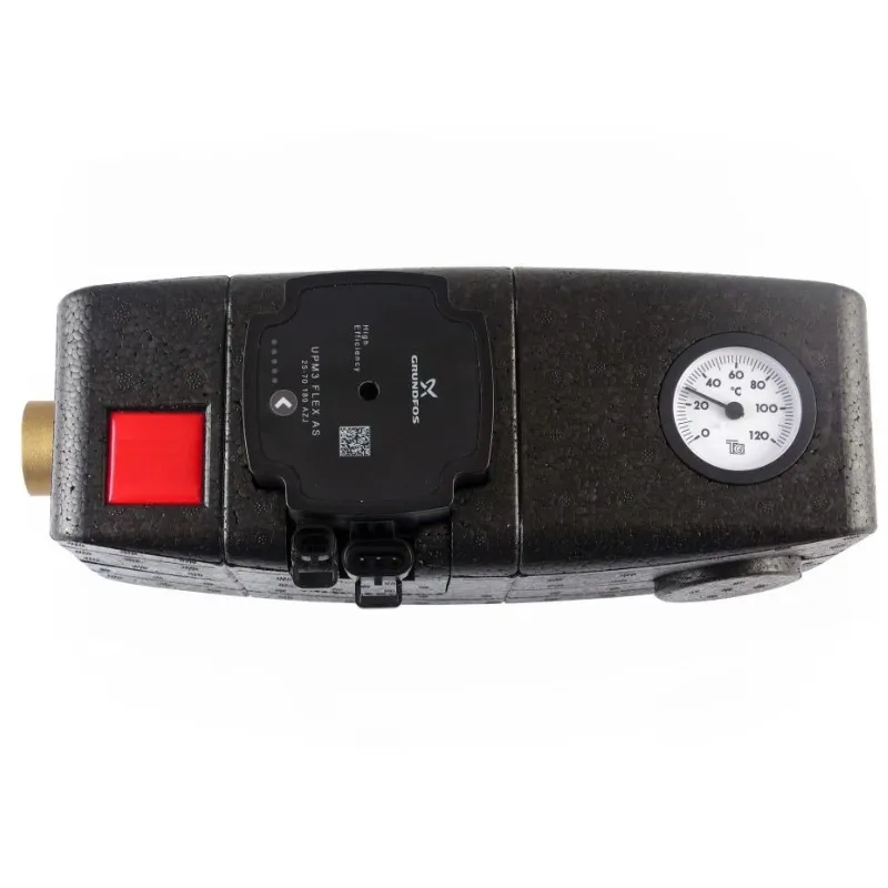 Die Pumpengruppe für Kessel und Kamine mit festen Brennstoffen verhindert Niedertemperaturkorrosion und das Verstopfen des Kessels, indem sie die Rücklauftemperatur des Wassers aus der Heizungsanlage mittels eines thermostatischen Ventils aufrechterhält.