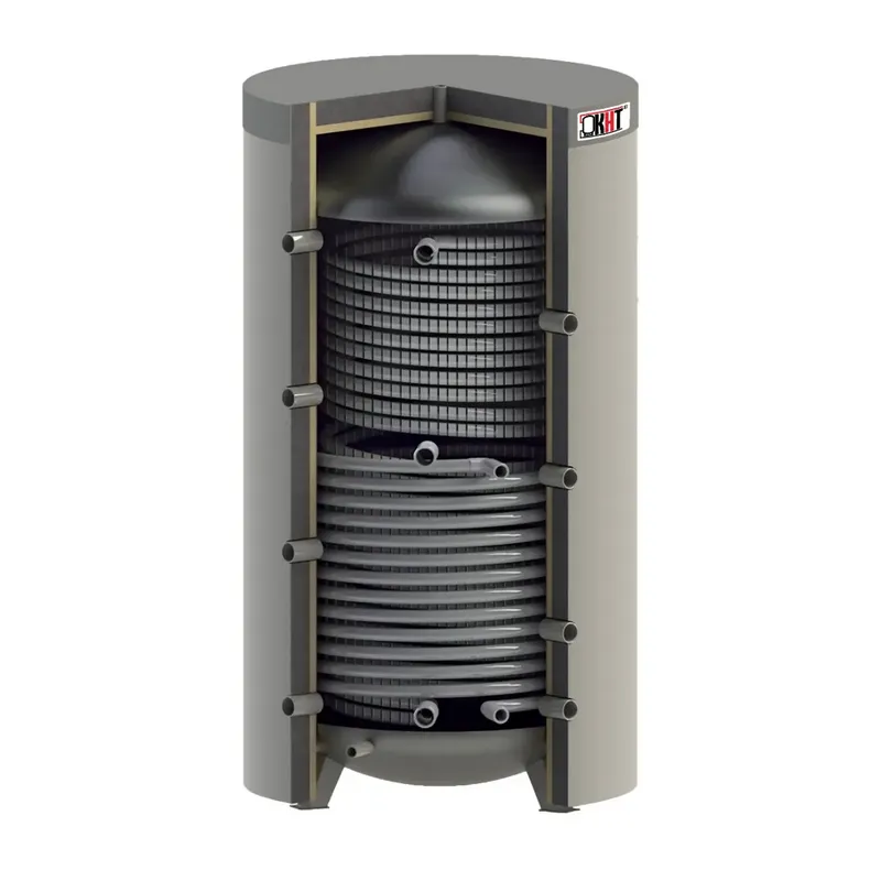 Der Wärmetauscher besteht aus einem gewellten Edelstahlrohr AISI-316L, einem Material mit hoher Korrosionsbeständigkeit und hygienischen Eigenschaften. Die Konstruktion des Wärmetauschers reduziert das Risiko von Bakterienwachstum (einschließlich Legionella), sodass der Speicher keine erhöhten Desinfektionstemperaturen benötigt. Dies ermöglicht eine sparsame und sichere Warmwasserbereitung ohne die Notwendigkeit einer periodischen Erhitzung auf sehr hohe Temperaturen.