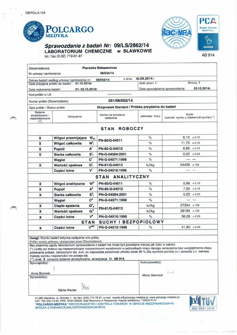 Noteworthy is the very low level of coal RI (coal refractive index) - 0-5. Small coal low RI level determines the gasification slag occurrence which is a very important parameter for trouble-free operation of the furnace or boiler with a retort. The higher the RI, the larger and harder sintered carbon (ie. Slag) forms itself in the coal degassing and plasticity area, which after evaporation of the small coal volatiles will be not combusted (resulting in solid fuel losses).