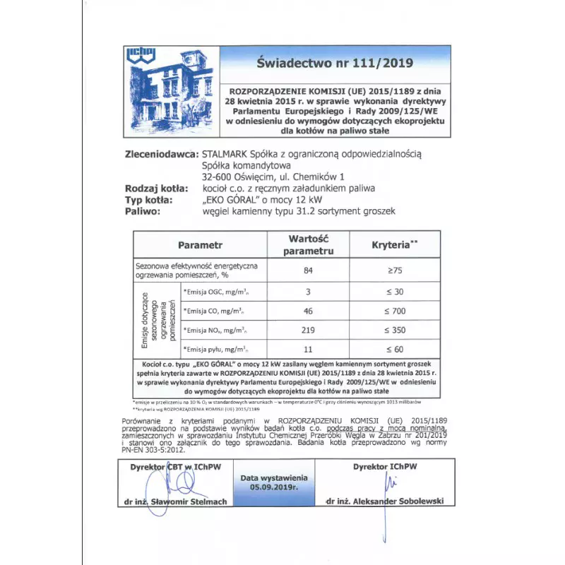 STALMARK EKO GORAL is the central heating boiler most often used in small single-family buildings, studios, commercial pavilions, utility rooms and garages. The fuel used in the combustion process is hard coal, assortment: peas I/II. The fuel should be dry, otherwise it drastically accelerates wear and tear of the boiler, resulting in is the corrosion of furnace plates, and external plates under a tenon.