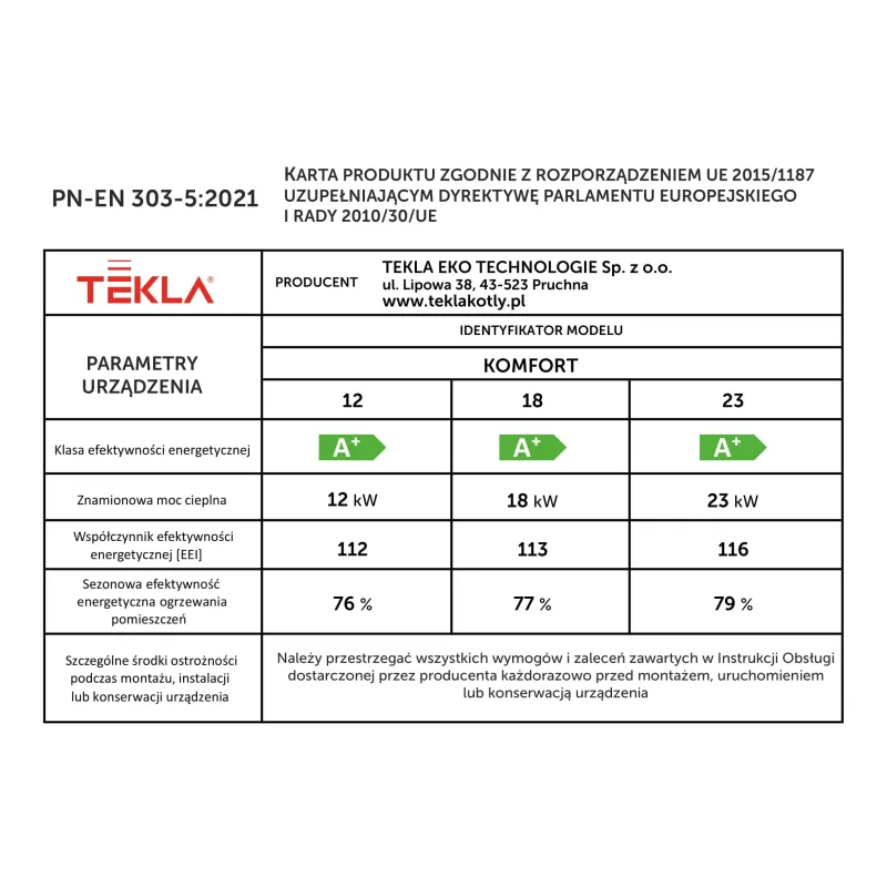 | Type | KOMFORT 12 | KOMFORT 18 | KOMFORT 23 | |