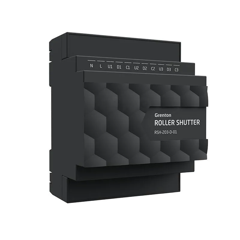 Roller Shutter module allows you to control blind or roller shutter drives (e.g. external blinds, internal blinds, curtains, curtains, awnings). Equipped with three pairs of control relays (up/down, left/right), it controls the operation of 3 drives (roller shutter, blind, awning, etc.). It allows controlling drives with a maximum power of 690 VA per channel and supports drives supplied with 230V AC. It has dedicated methods for controlling roller shutters/blinds and allows smooth control of the opening level. Powered directly from the bus with 24V DC voltage. Possibility to control 3 drives independently.