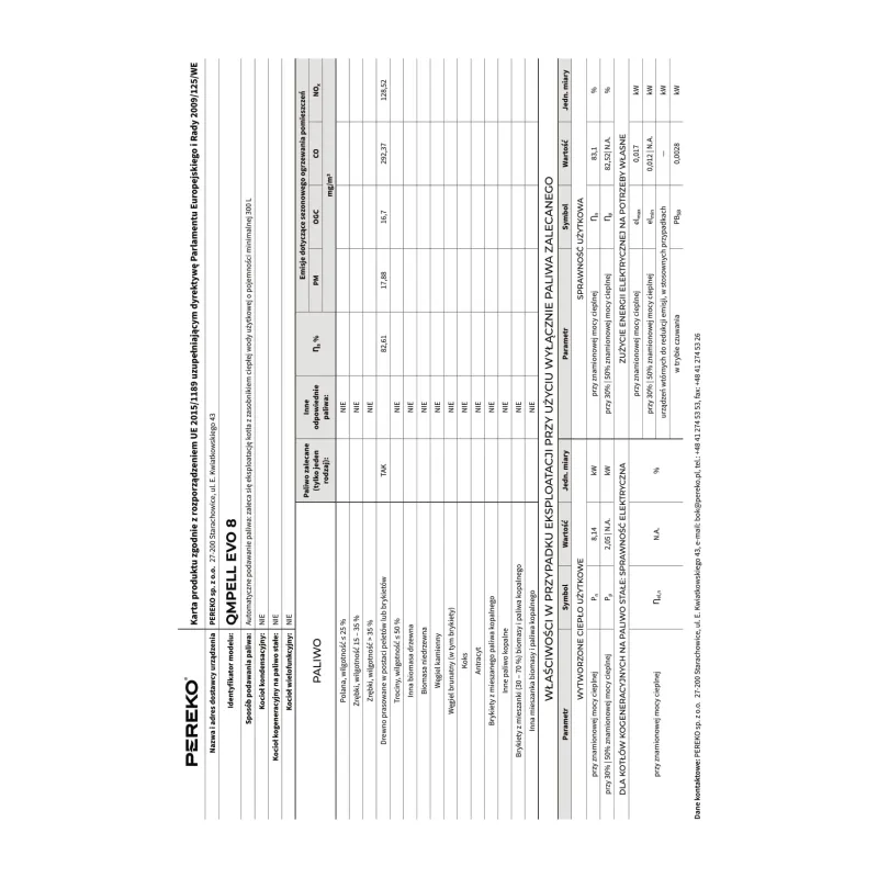 | Thermal Efficiency According to PN-EN 303-5:2012 (nominal power – minimum power) | [%] | 89.89 – 89.29 | 91.27 – 90.96 | 88.26 – 87.73 | |