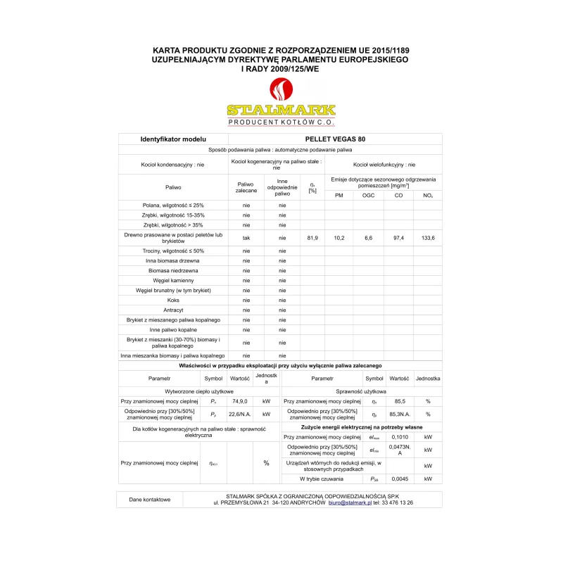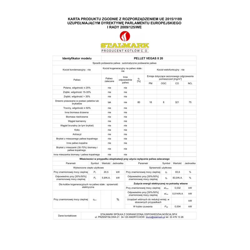 | Średni pobór mocy kotła | [W] | 66 | 90 | 101 |