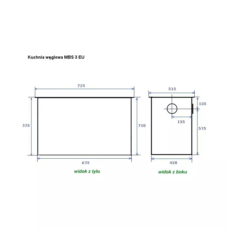 Cechy kuchni węglowej emaliowanej MBS 3 o mocy cieplnej 6,5 kW przy opalaniu drewnem: