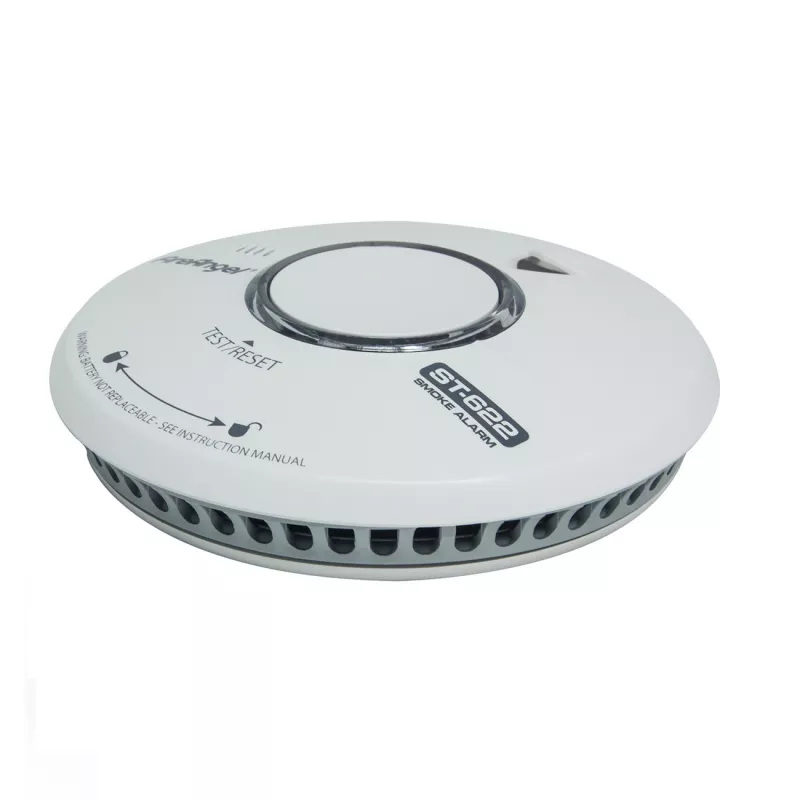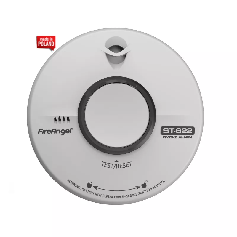 FireAngel ST-622 to certyfikowany czujnik dymu posiadający opatentowane sensory THERMOPTEK, które pozwalają dwukrotnie szybciej zareagować na pojawiające się źródła ognia, znacząco podnosząc poziom bezpieczeństwa użytkowników. Jest bardzo łatwy w obsłudze a ponad to zintegrowana bateria litowa, która nie wymaga ładowania ani wymiany przez cały okres użytkowania. Funkcja SLEEP-EASY pozwala na wyciszenie alarmu dźwiękowego, który będzie sygnalizował koniec okresu użytkowania, na kolejne 8 godzin, tak aby ułatwić możliwość wymiany urządzenia na nowe, nie zakłócając przy tym naszego snu. Czujnik posiada 10-letnią gwarancję.