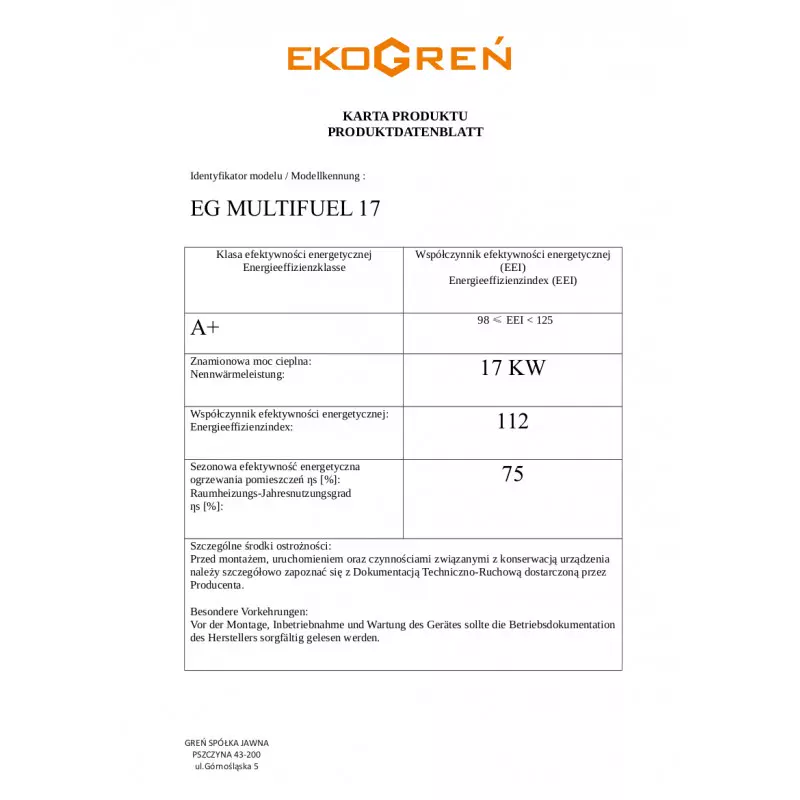 Kocioł EG-Mutltifuel jest automatycznym kotłem na biomasę, idealnym do każdego typu pomieszczeń np. domy jednorodzinne, warsztaty, firmy, zakłady produkcyjne, urzędy, szkoły, przedszkola czy szpitale. W kotle może być użyty pellet różnej granulacji i jakości, zrębki drewna, trociny, brykiety, łupiny orzechów, zboża, pestki owoców itp.