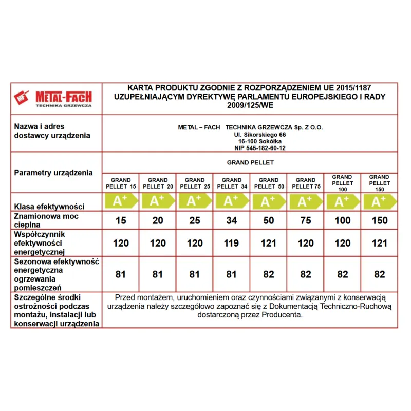 | TYP | GRAND PELLET 50 | GRAND PELLET 75 | GRAND PELLET 100 | GRAND PELLET 150 |