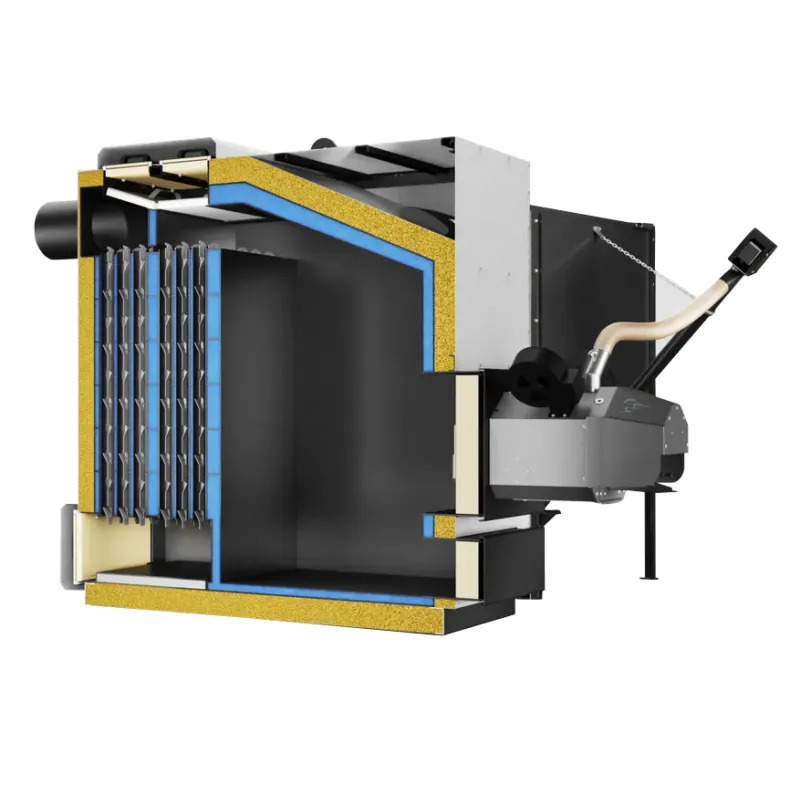Efektywna konstrukcja przystosowana do automatycznego czyszczenia wymiennika. Budowa wymiennika kotła zapewnia wysoki odbiór ciepła z paleniska.