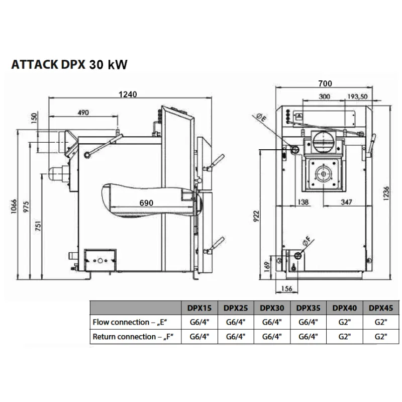 Kocioł ATTACK DPX jest kotłem z serii 6000 na drewno. Przystosowany został do spalania drewna co sprawia, że kocioł jest bardzo komfortowy w użytkowaniu. Kocioł zgazowujący jest ekologiczny, oferuje wysokiej jakości konstrukcję i doskonałą sprawność. Większa przestrzeń ładunkowa oszczędza czas potrzebny do ciągłego uzupełniania opału. Ogrzewanie kotłem DPX zapewnia wysoki komfort oraz długą żywotność. Kocioł ten jest uniwersalnym rozwiązaniem zapewniającym wydajne spalanie biomasy, dzięki czemu sprawność tego modelu kotła jest wysoka. Istnieje możliwość wyboru wersji kotła w wersji z otwieraniem klapy na prawą lub na lewą stronę. Wersja DPX15 nie posiada turbulatorów spalin, co za tym idzie kocioł należy czyścić manualnie.