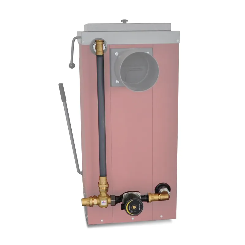 Zadaniem układu antykondensacyjnego jest podniesienie temperatury wody (czynnika grzewczego) na powrocie do kotła. W ten sposób zabezpieczamy kocioł przed negatywnym wpływem korozji niskotemperaturowej.