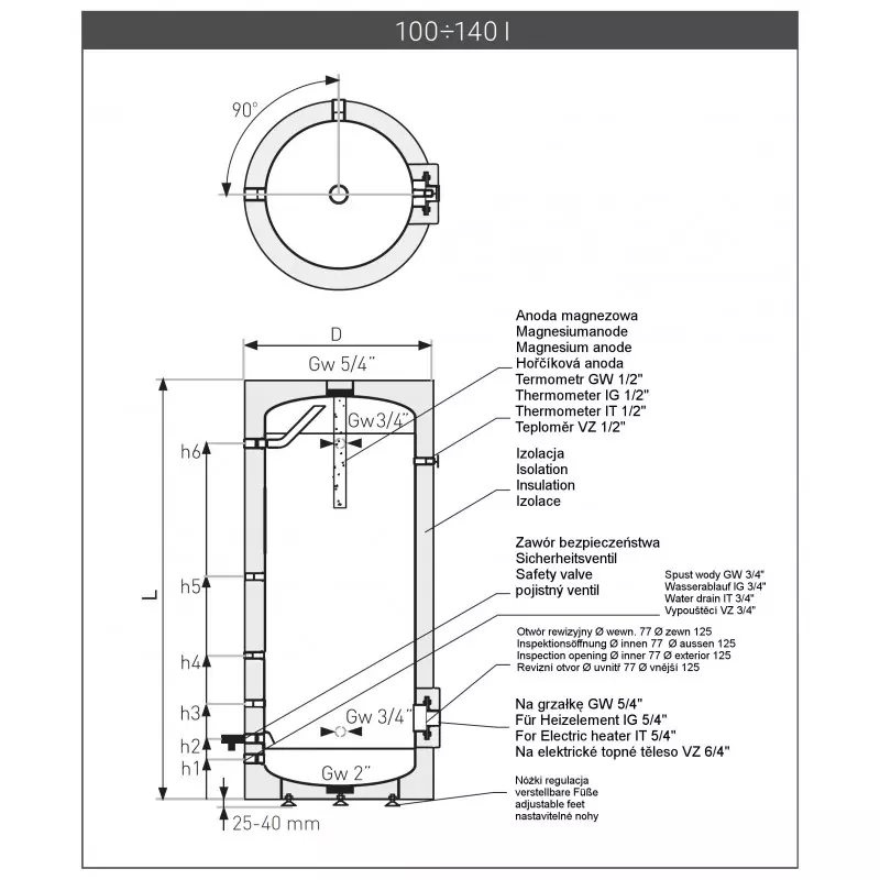 | h2 - dopływ zimnej wody - Gw 1” | mm | 210 | 210 | 240 | 240 |