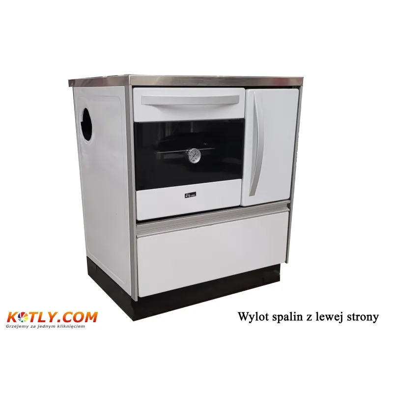 Kuchnia lewa: wyjście spalin będzie z tyłu po lewej stronie oraz na lewej bocznej ściance, natomiast palenisko znajdzie się po prawej stronie