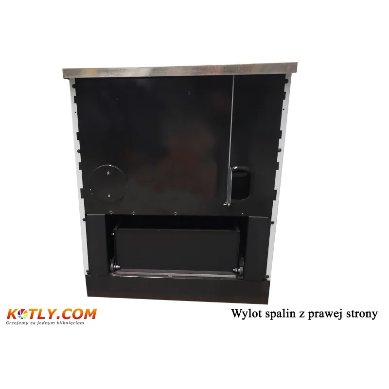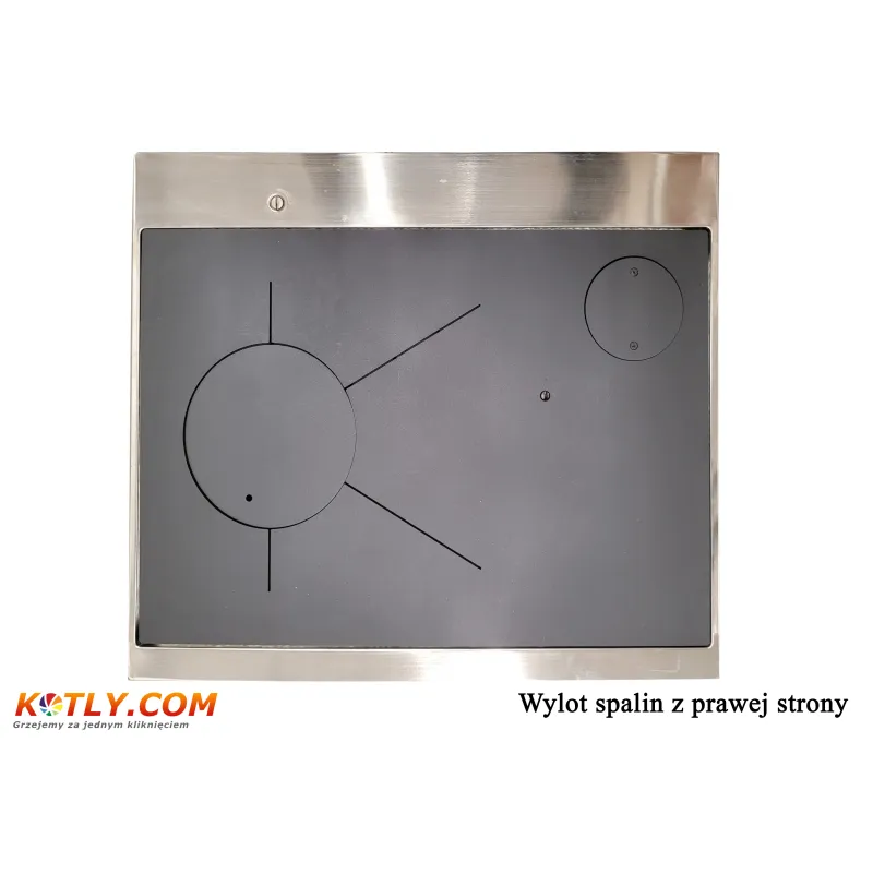 Kuchnia prawa: wyjście spalin będzie z tyłu po prawej stronie oraz na prawej bocznej ściance, natomiast palenisko znajdzie się po lewej stronie