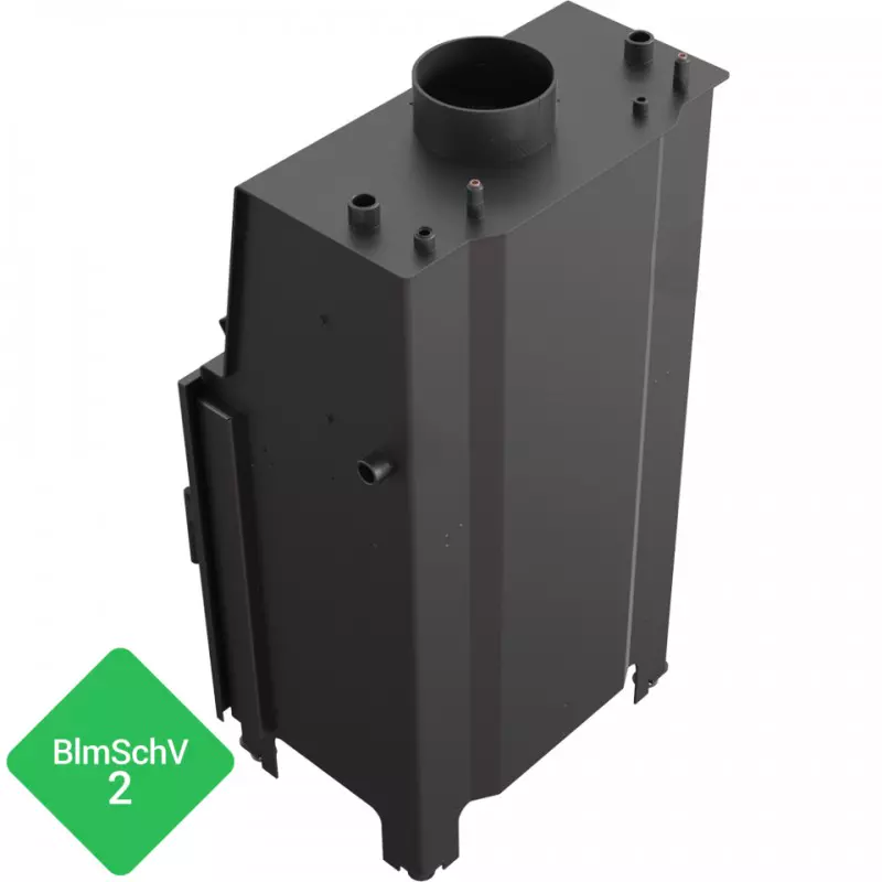 Dzięki specjalnemu zespołowi płaszcza wodnego do systemu grzewczego dostarczana jest duża ilość ciepła, dzięki czemu możliwe jest uzyskanie wysokiej sprawności energetycznej wkładu.