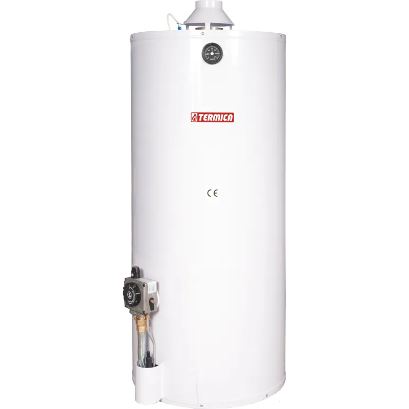 Pojemnościowe wiszące podgrzewacze gazowe TERMICA P, wykonane ze stali nierdzewnej z izolacją i metalową obudową. Bezpieczeństwo eksploatacji zapewnia automatyka sterująco- regulująca wyposażona w urządzenie odcinające dopływa gazu w przypadku zgaśnięcia płomienia na palniku. Urządzenie wyposażone jest również w czujnik zaniku ciągu kominowego z limiterem uniemożliwiającym zagotowanie się wody w podgrzewaczu. W podgrzewaczu znajduje się również fabrycznie montowany zawór bezpieczeństwa. Urządzenie jest niewrażliwe na spadki ciśnienia wody. Ciepło ogrzewające wodą pochodzi ze spalania gazu ziemnego. Gdy zapotrzebowanie na wodę jest większe niż pojemność pojedynczego podgrzewacza mogą one być łączone szeregowo w bateria, zapewniając dostateczną ilości ciepłej wody.