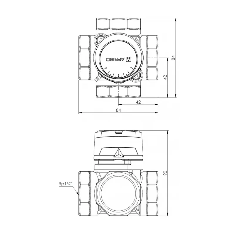 Montowany na zasilaniu instalacji jako zawór z podwójnym mieszaniem.