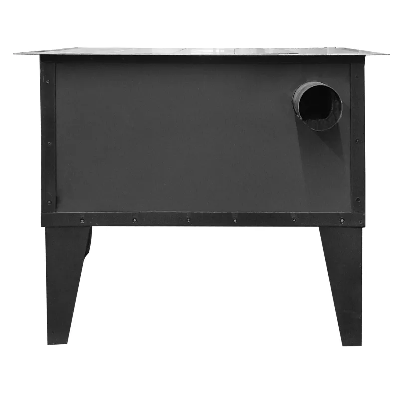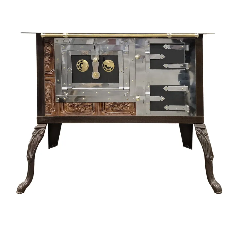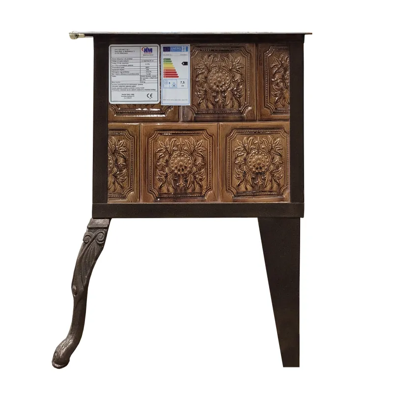 W przedniej ściance znajdują się drzwiczki paleniska i piekarnika, a równomierne nagrzanie grzejnika zapewnia kanał grzewczy. Kuchnia została zaprojektowana z wysokiej jakości materiałów: niklowana konstrukcja, emaliowane drzwiczki, ściany wyłożone kaflami oraz nierdzewna rama wokół płyty. Dodatkowo, palenisko i cała kuchnia wyłożone są cegłą szamotową, co zwiększa trwałość i efektywność cieplną urządzenia.
