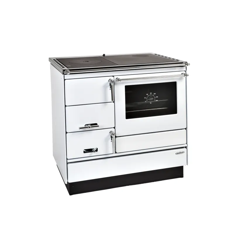 Przestronna komora spalania może być łatwo dostosowana do letniej lub zimowej eksploatacji (wyjmowany górny ruszt). Jedną z wielu zalet jest zmienność podłączeń do komina.