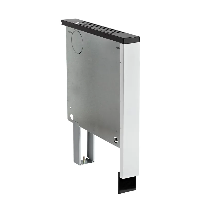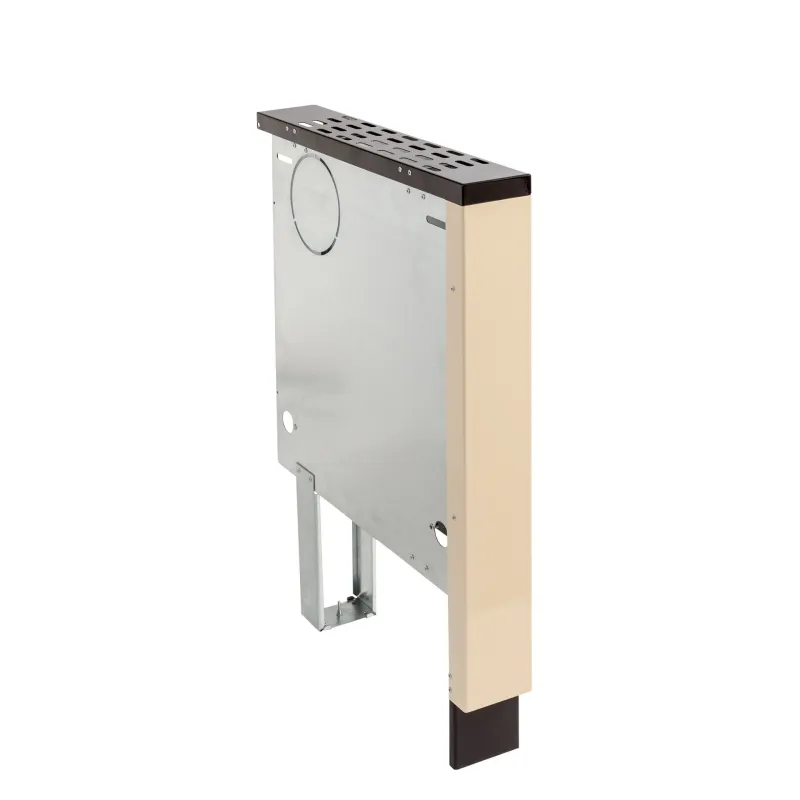Panel dzięki swojemu kształtowi i wymiarom płynnie łączy się z kuchnią, nie zakłócając jej ogólnego wyglądu. Wewnętrzne części panelu wykonane są z ocynkowanej blachy, a zewnętrzne, widoczne powierzchnie posiadają powłokę odporną na wysokie temperatury. Panel może być montowany po obu stronach kuchni, z wyjątkiem sytuacji, gdy z boku podłączony jest przewód kominowy.