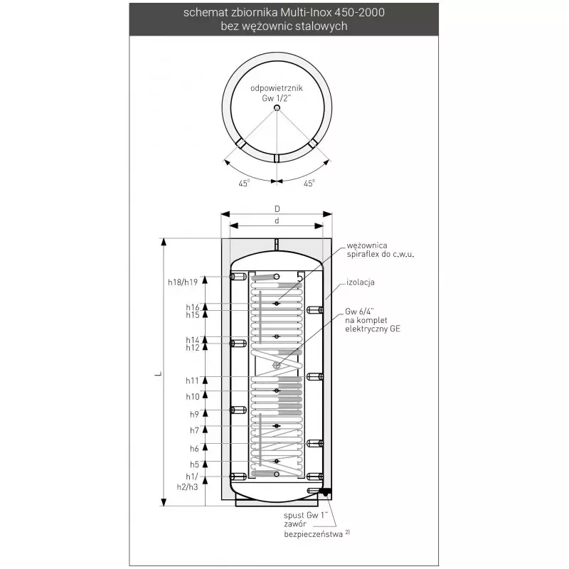 | d - średnica zbiornika bez izolacji | mm | 700 | 790 | 900 | 1100 | |