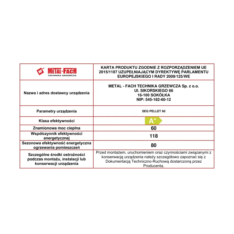 Produkt posiada Certyfikat EcoDesign oraz 5 klasę kotła, co potwierdza jego zgodność z aktualnymi normami ekologicznymi Unii Europejskiej.