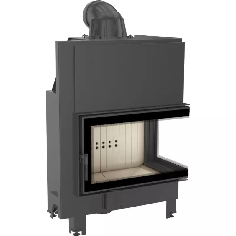 Wkład kominkowy posiada dekoracyjną giętą szybą typu glass wytrzymującą temperaturę do 800°C. Posiada również system czystej szyby ograniczający osadzanie sadzy.