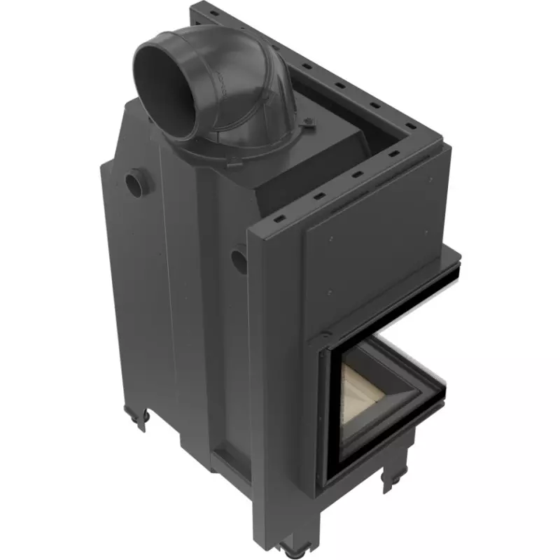 Wkład kominkowy wykonany z wysoko gatunkowej stali. Front wkładu wyposażony został w ceramikę żaroodporną wytrzymująca temperaturę do 800°C. Stalowe elementy zostały wycięte laserowo, a następnie wygięte na giętarkach CNC. Posiada potrójny system dopowietrzenia komory spalania. Drzwi kominka zostały wykonane z zamkniętego profilu, dzięki czemu są stabilne i wytrzymałe. Wkład jest szczelny dzięki solidnym spawom wykonanym w osłonie gazu szlachetnego.
