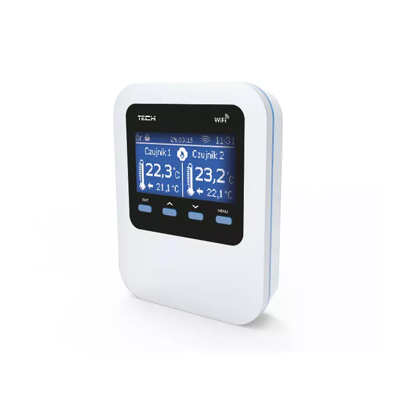 Moduł Wifi służy do sterowania dowolnym urządzeniem grzewczym poprzez Internet. Jego konstrukcja opiera się o trzy peryferia: wbudowany czunik temperatury, dodatkowy czujnik temperatury (NTC) wpinany w sterownik oraz styk.