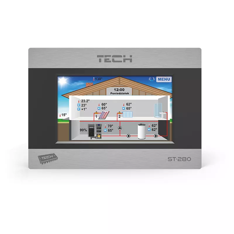 Regulator pokojowy typu ST-280 przeznaczony jest do sterowania i kontroli temperatury centralnego ogrzewania, ciepłej wody użytkowej i temperatury pokojowej który może realizować tygodniowy program ogrzewania. Zastosowanie regulatora zapewnia wygodne sterowanie temperaturą w domu i temperaturą ciepłej wody użytkowej wprost z mieszkania bez konieczności schodzenia do kotłowni.